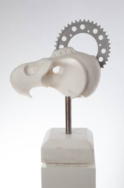 Michael Königer, Vogel-Dragster, 2017, Auerkalk, 80 x 36 x 33 cm